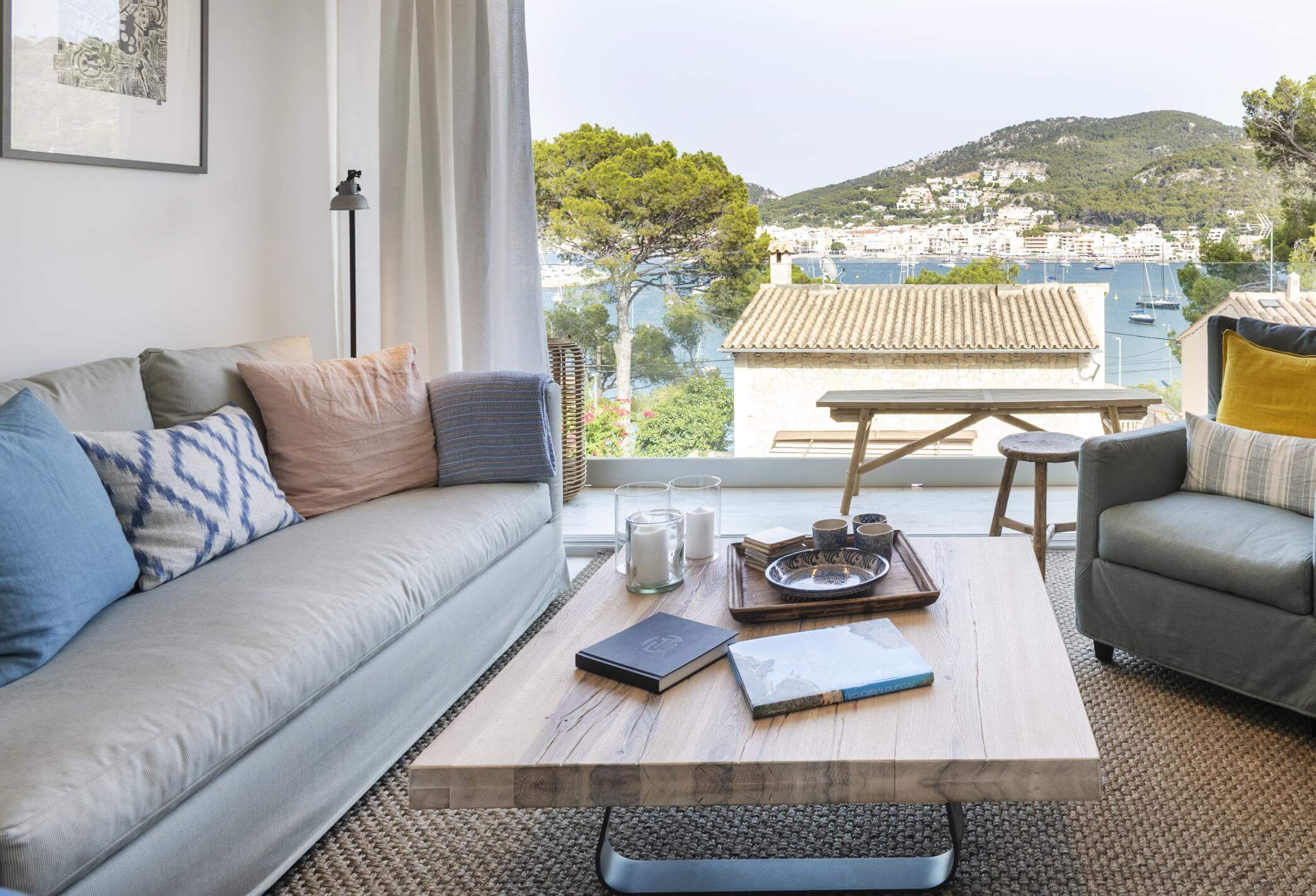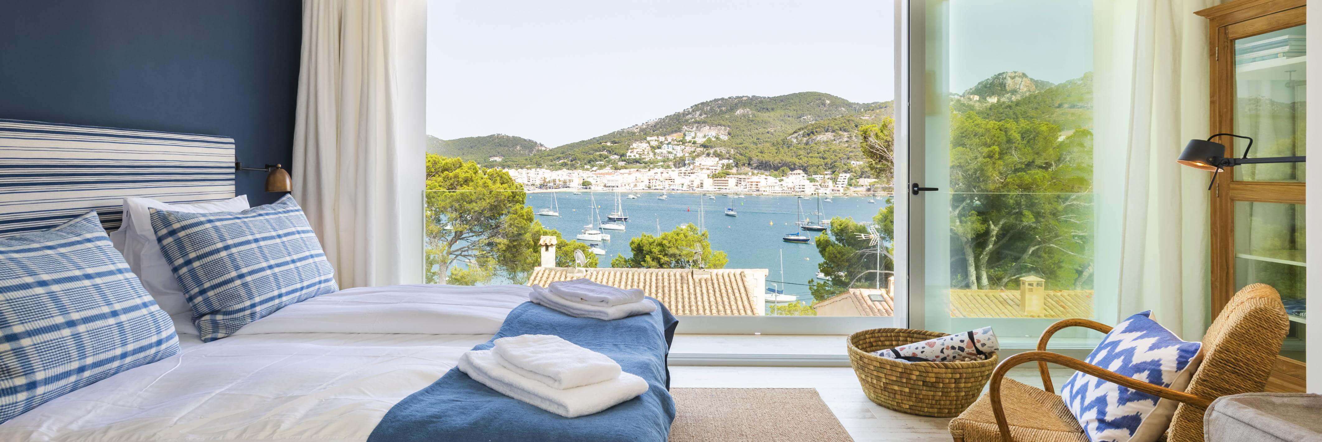 Superhyggelig rekkehus over 3 plan, beliggende i et stemningsfullt nærområde med utsikt over bukten i Port d'Andratx. To private terrasser fullender den perfekte ferieboligen.